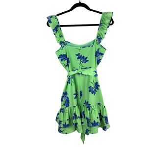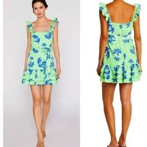 This Likely Mini Charlotte Dress is absolutely stunning! The pistachio green and tropical blue floral print is so vibrant and feminine, perfect for spring, garden parties, or even as a wedding guest dress.