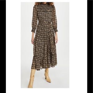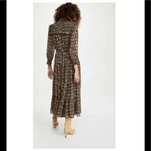 Likely dress. Mock neck. Tiered. Waist tie string. Zipper back. Flows. Size 4. Lined. 3/4 sleeves.