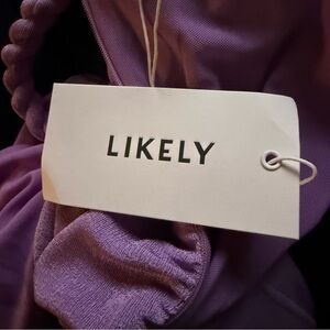 • Design details: twisted shoulder straps, V-neck, built-in side boning at bodice, ruched design and split back hem