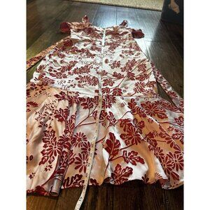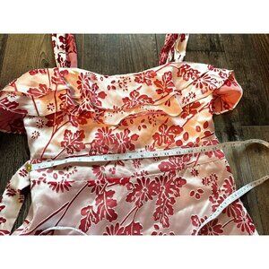 Likely Revolve Pink Floral Midi Trumpet Dress Ruffle Top Size 10