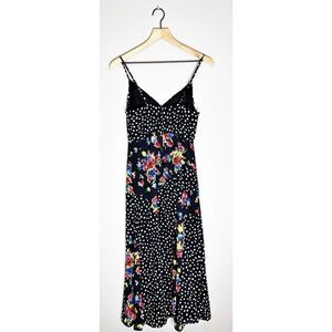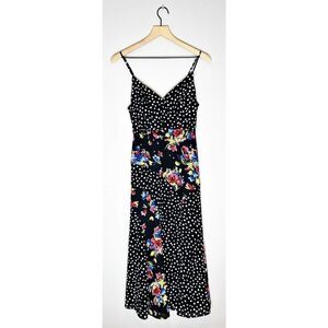 Likely Saige Floral & Polka Dot Slip Dress Black Multi Size 2 Surplice Neck