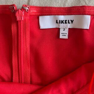 Likely Abbot strapless dress in beautiful coral color. Cut out detail. Mermaid hem. Zipper back.
