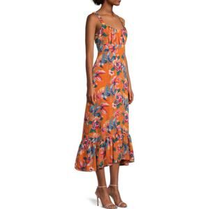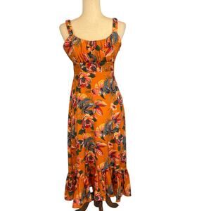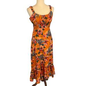 Likely Timble Tiered Midi Dress Floral Print Orange Sleeveless Size 4