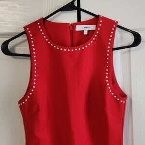 Beautiful red bodycon dress by Likely. Silver studs around neck and arm openings. Zipper and hook and loop closure. Has some stretch. Falls just above knees. NWOT