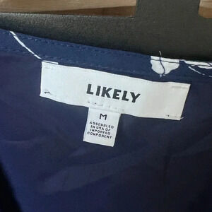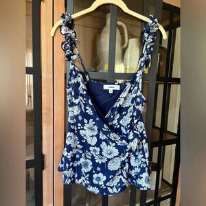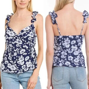 Likely Wrap tank top Blouse Marin Sleeveless Floral Ruffles navy tie front bow