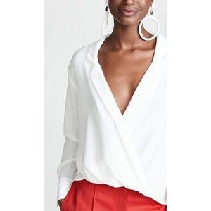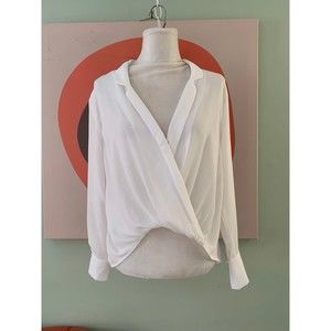 Very good condition Likely half tuck white blouse. Lighting is dim in my house, this is a bright white like stock photo. Size XS. Wrist buttons and shoulder have some marks and a small pull at armpit.