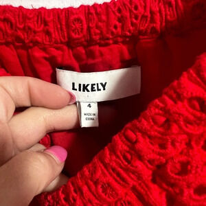 Keywords: Likely red dress, Revolve cocktail dress, off-shoulder eyelet mini, coastal chic style, wedding guest outfit, summer party dress, preppy resort wear