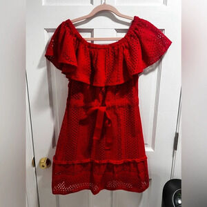 Likely size 4 off the shoulder eyelet red dress in excellent condition