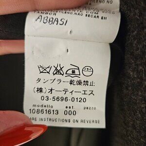 This Max Mara Virgin Wool and Angora Shawl Collar Wrap Coat is in excellent condition with no visible signs of wear. The knee length, dark gray coat is exceptionally soft, with slit pockets, collar buttons, and a sash-tie closure.