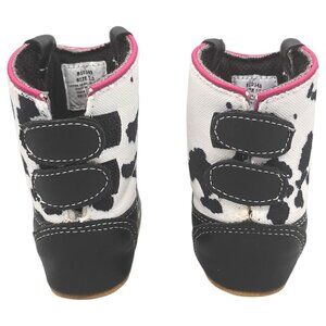 Lil Boot Barn Baby Cow Print Western Boots Size 2 Black/White Faux Leather & Can