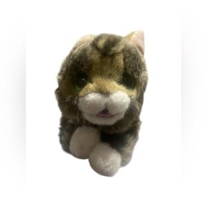 This is a pre-owned Lil Bub Cuddle Barn Cat Kitty Plush Stuffed Animal. The toy is a medium-sized (14-24 inches) cat with green eyes and multicolor fur. It is recommended for children aged 3 and up. The toy was made in China. The toy is designed to be realistic and is perfect for children who love cats.