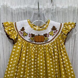 Lil Cactus Baby Girl Smocked Dress Fall Colors Size 12-24 Months