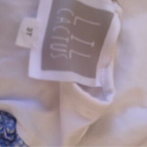White tee with blue flutter sleeves