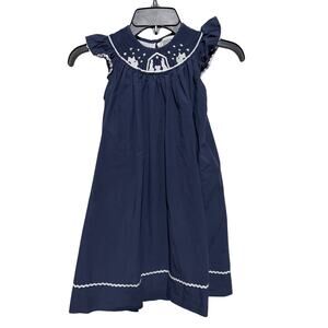 Lil Cactus Nativity Dress 6. Navy Blue and white. In VGUC