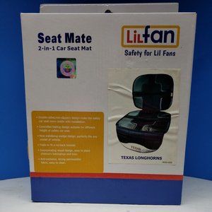 Lil Fan Seat Mate 2-In-1 Car Seat Mat "Texas Longhorns" NIB Slip, Stain Waterproof. Protects car seat from spills, crumbs, etc. Controlled folding design suitable for diferent height of safety car seat. New wedge design perfectly fits any model of vehicle. Folds to fit a no-back booster. Incorporating visual design, easy to place children's belongs and toys. Double-sided, non-slippery design make the safety car set more stable with installation.
