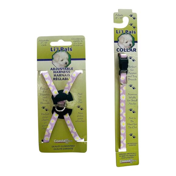 Li'l Pals Adjustable Harness and Collar Lilac Floral Puppy Size