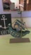 Metal rocking boy in boat. See video on photos. Rocks back and forth. Added a cute Ahoy wooden sign. Would go well with “Where the Wild things Are”. Cute for little boys (or girls) room and to fuel their imagination!