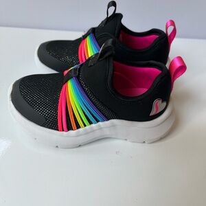 Lil' Skechers Girls size 6 Black & Rainbow Slip-On Sneakers