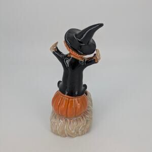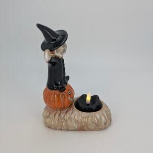 Embrace the whimsical side of Halloween with this charming and retired Yankee Candle Boney Bunch "Lil Witch" candle holder. This unique piece features a playful skeleton witch perched atop a grinning jack-o'-lantern. A must-have for Boney Bunch collectors, this holder adds a delightful touch of spooky charm to any autumn or Halloween display.