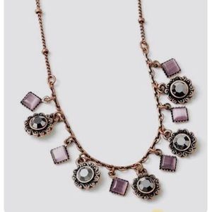 Super cute, gently worn a necklace and earrings. Purple cat eyes with antique gold tones 16-19 inches