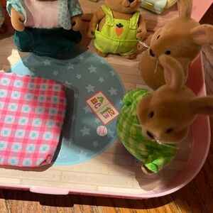 Li’l Woodzeez Travel Suitcase, 6 Cottonball Rabbit Figures Dollhouse Chairs Lot