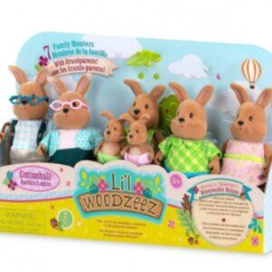Li'l Woodzeez Cottonball Rabbit Family Animal Toy Set Bunnies Grandparents Babies