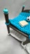 Charming doll bunk bed with a blue and white crochet design. Includes a miniature soccer ball and book for added play.