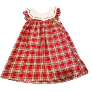 Lil Cactus Girls Dress Red Flannel Scalloped Neck