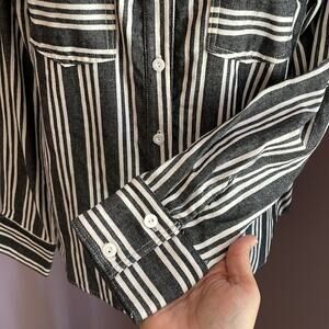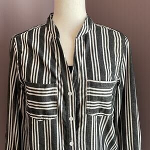 Lila Li Button Up Shirt Stripe Patch Chest Pockets Black White Women's size S