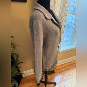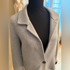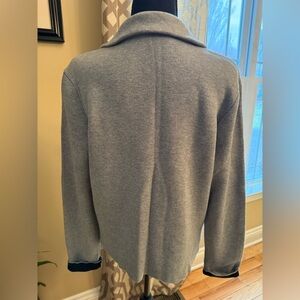Lilla P women’s one button long sleeved gray/black cardigan sweater/blazer, size medium. Cotton blend. EUC. No rips, holes, stains or odors. Please see photos for item details/dimensions. Some photos may appear different in color due to lighting. Ships from smoke-free home.