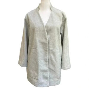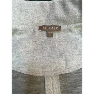 Lila P size small gray Jacket With Mandarin Collar, Front Pockets Hidden Snaps 100% Polyester Dry Clean Only Imported