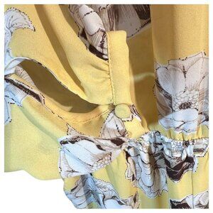 Lila Rose Romper Size 4 Yellow Floral Long Sleeve Keyhole Elastic Waist Pockets