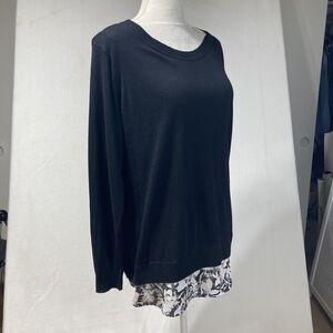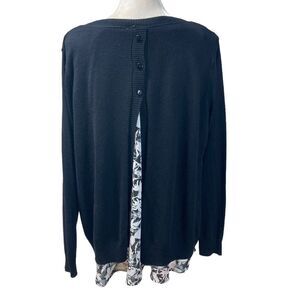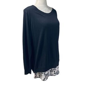 Lila Rose Top Women's Size 1X Black White Floral Flowy Blouse 2 in 1 Sweater