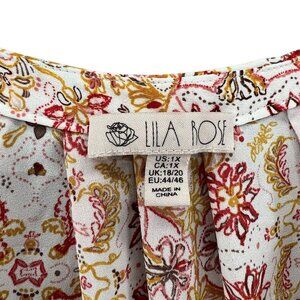 Lila Rose Womens 1X Top Sleeveless Floral Multi Yellows Reds Off White