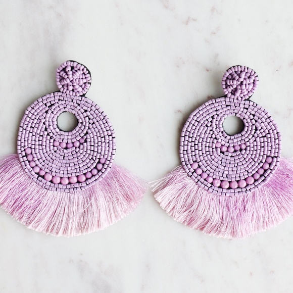 Lilac Beaded Tassel Earrings