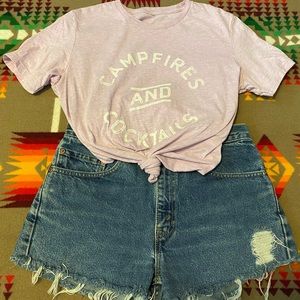 Summer spring campfire cocktails graphic tee shirt light purple lilac camping