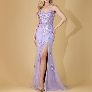 Lilac Floral Strapless Sweetheart Neck Corset Prom Formal Evening Dress 0