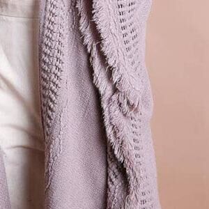 Lilac Grey Open Work Frayed Border Bohemian Ruana Shawl Wrap