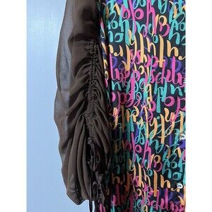 Unique Italian bold and colorful brown Lilac & Iris statement button front shirt dress with a pointed collar and puff sleeves. Made with quality fabric, this dress is not only unique but also comfortable. Show off your one of a kind style in this piece. In very good condition from smoke free home.silk