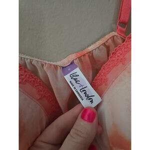 Lilac + London Pink Floral Negligee V-Neck Babydoll Chemise Womans Size Medium. Pre-owned