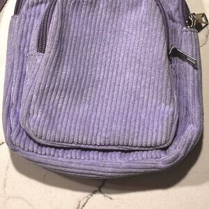 Lilac Purple Corduroy Crossbody Sling Mini-Backpack Bag w Adjustable Strap