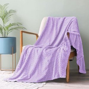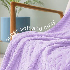 Lilac Purple Knit Jacquard Weave Pattern Decorative Warm Flannel Couch Blanket