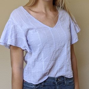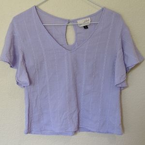 Universal Thread XS light purple blouse with ruffled sleeves and textured fabric detail.