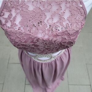 This ethereal gown blends soft lilac chiffon w/ silver sequin lace overlay ✨