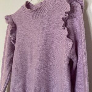 Long sleeve measures 27.5", ruffle shoulder detail, mock neck and a pullover "jumper" aka sweater NWT