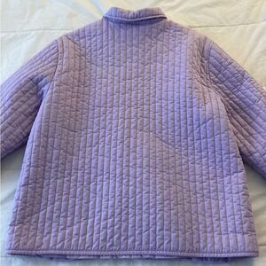 Lilac XXL quilted jacket, warm, lined, front pockets, cotton, poly, 48” bust, 27” long