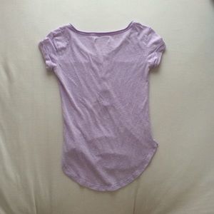 This shirt is a light lilac purple and is in perfect shape. It has been worn but it has no damage. No stains, no rips, it's all in good shape. If you have any questions let me know😊