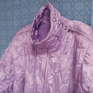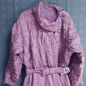 Gorgeous lilac colored elegant stunning quilted ski snow suit. Euro size 40, US size 10. It has 4 zippered pockets and lots of other zippers to allow venting at the neck, ankles and wrist areas. It is a gorgeous lilac color with a very pretty quilting-type design. Excellent condition!