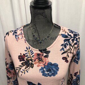 Lildy Pink Floral Knot Front Tunic Womens Size Small Medium Long Sleeve Top NEW