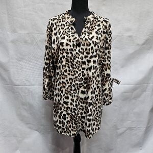 Lildy Split Sleeve Animal Print Pull Over Tunic 97% Polyester 3% Spandex Sz L/XL